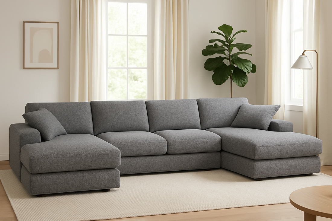 This contemporary U-shaped sectional sofa combines minimalist design with maximum comfort. Upholstered in a soft...
